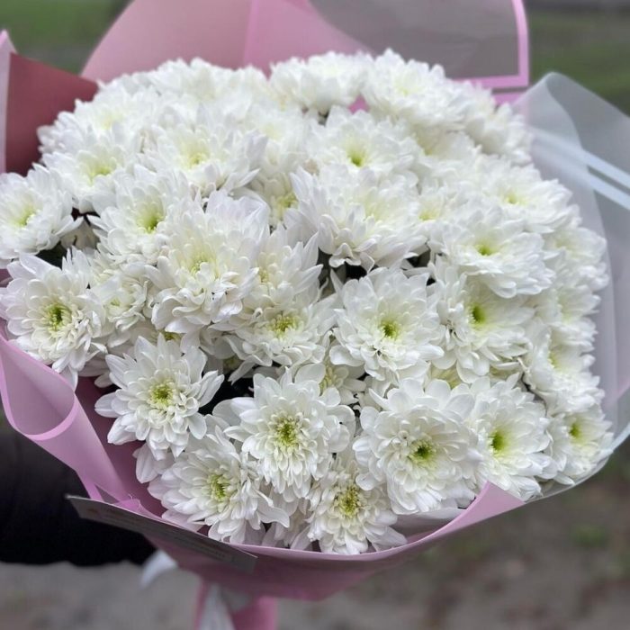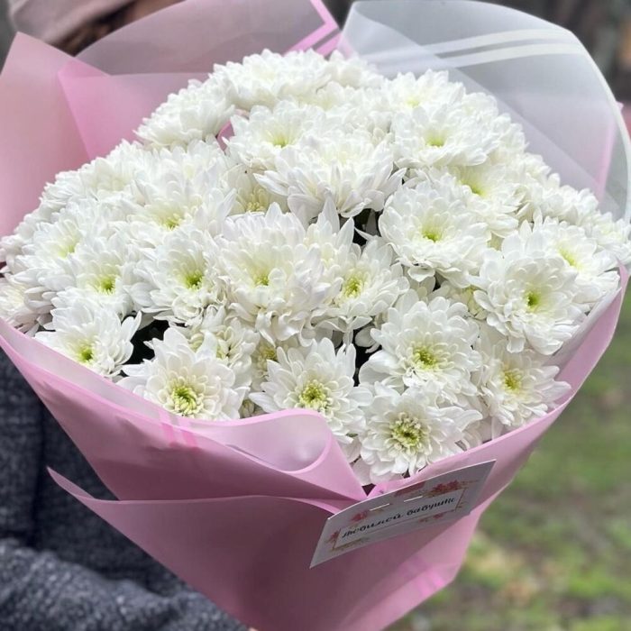 Нежное облако белой хризантемы с красивым офоомлением – прекрасно подойдёт на подарок по любому случаю и событию. Такой букет будет долгое время радовать получателя своей красотой.