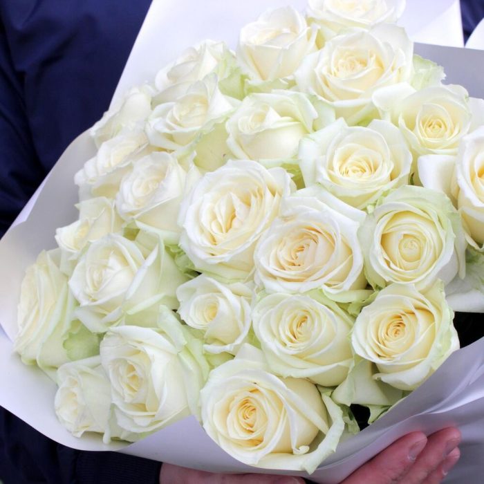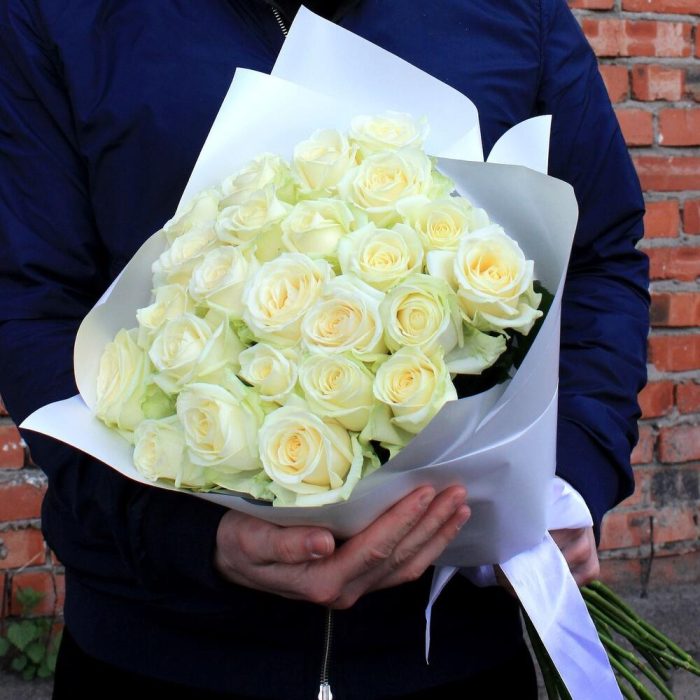 Букет из 25 белых роз 35-40 см (Кения) под ленту