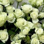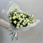 белые кустовые розы – 15 шт. Открыточка с вашими пожеланиями – 1 шт. Упаковка дизайнерская – 2 шт.