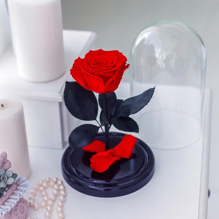 Живая роза, сохраняющая свой первозданный вид не менее 5 ЛЕТ.Создана по мотивам сказки “Красавица и чудовище”.Не требует ухода и особых условий хранения.Это то, о чем она мечтает. Позаботьтесь о подарке заранее!